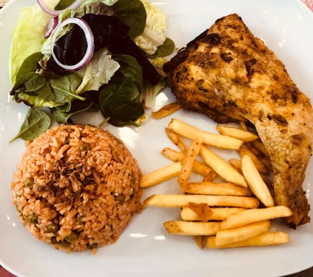 Nous vous proposons : Poulet braisé ( tenders , demi poulet, pilons, cuisse) , Poisson grillé, Thalis et burger.